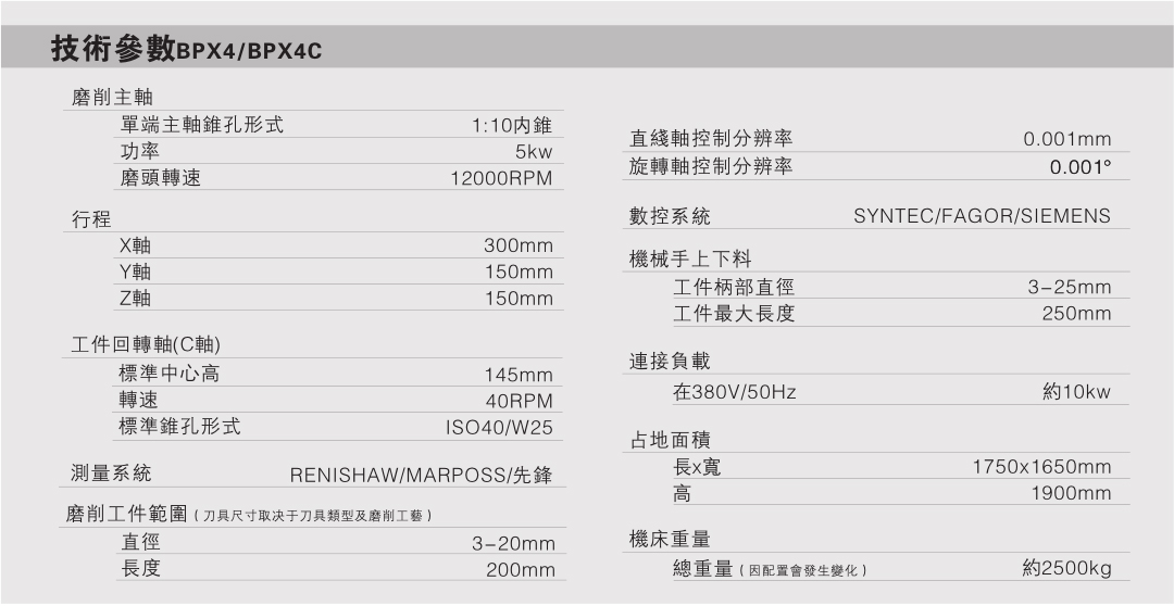 床臺結構剛性佳-低振動/高剛性線性滑軌-耐磨耗/ 高精密滾珠螺桿-精度高/北平機床BPX4是基于同一個結構平臺而為不同用戶群開發(fā)的具有不同使用功能的經(jīng)濟高效的工具磨床。